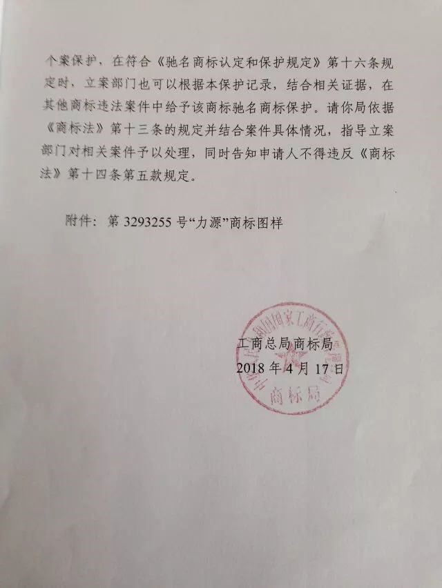 2018年4月17日,我公司“力源”商標(biāo),被國家工商行政管理總局商標(biāo)局認(rèn)定為“中國馳名商標(biāo)”,這是保健酒類的第三個(gè)“中國馳名商標(biāo)”,為公司品牌戰(zhàn)略的開展再添佳績,是公司自成立以來獲得的又一次重要榮譽(yù)。是對公司多年來發(fā)展壯大和品牌建設(shè)的充分肯定,對提高公司知名度、品牌形象有非常重大的意義。榮譽(yù)的獲得,是國家、社會(huì)、行業(yè)、及廣大用戶對公司產(chǎn)品質(zhì)量、服務(wù)與創(chuàng)新的肯定和認(rèn)可,是公司發(fā)展、創(chuàng)新、超越戰(zhàn)略的又一里程碑。
